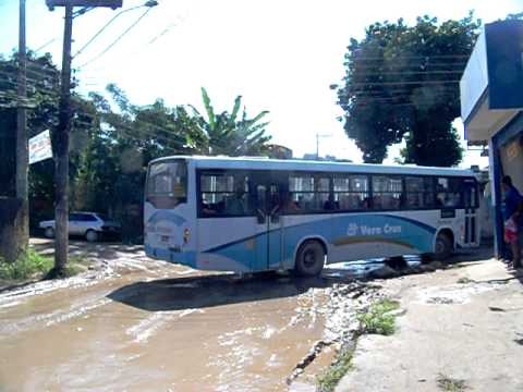 Ônibus das empresas Vera Cruz e Flores passam em ruas em condições precárias em Heliópolis, Belford Roxo.